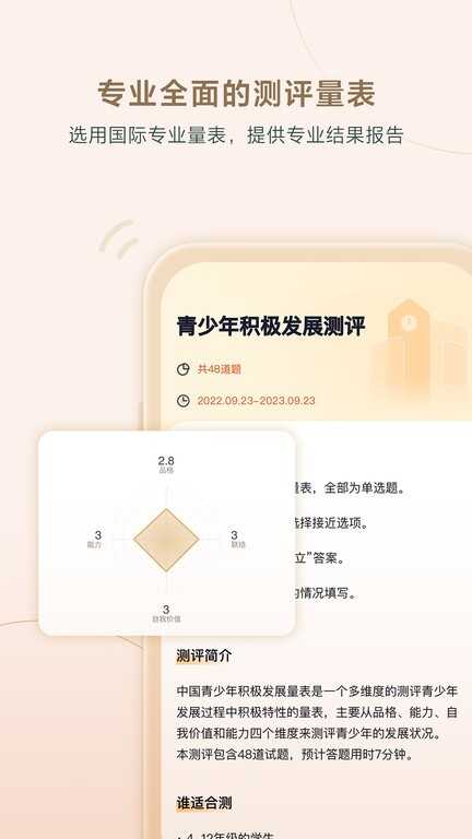 4.通过科学的测试方(fang)法(fa),帮助用户了解自(zi)己(ji)的心理特点和潜在问题,为后续的心理辅导提供依据。