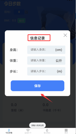 2、日常记录:随身携带手机自动计步,在"饮水记录"添加每次饮水量。