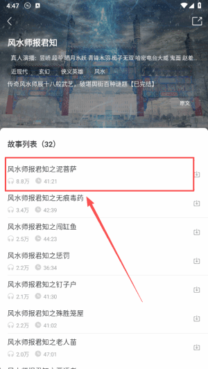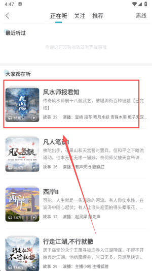 4、点(dian)击(ji)故事列表以开始听书,沉浸在动人的声音和叙述之中。
