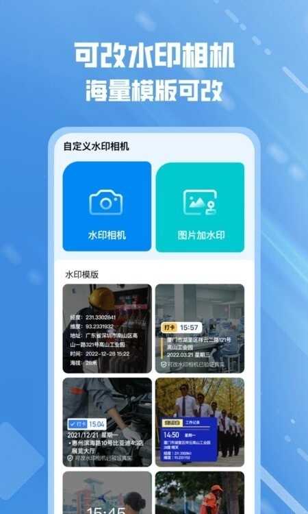可自定义水印样式,自由选择素材进行拍摄打卡使用。