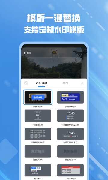 支持现有水印中水印信息的更改,水印内容选项(xuanxiang)自由开关,时间地点水印、天气水印、经纬水印、卡通水印、打卡水印等多套模板,還原工作和生活场(chang)景(jing),满足不同用户对水印样式的要求。
