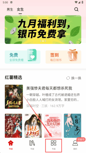 4、进入女生排行页面可以查看本月红票榜、最强人气榜、火热新书榜等等各大榜单内容