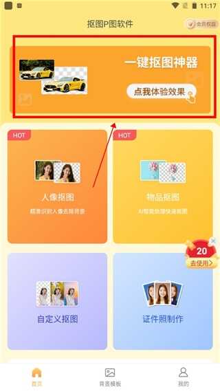 1、在本站下载并安(an)装软件后打(da)开(kai),进入软件后点击一键抠图,如图;