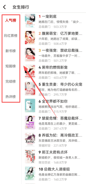 3、里面还有非常丰富的排名,你可以在排名里轻松找到(dao)自己喜欢的小说。