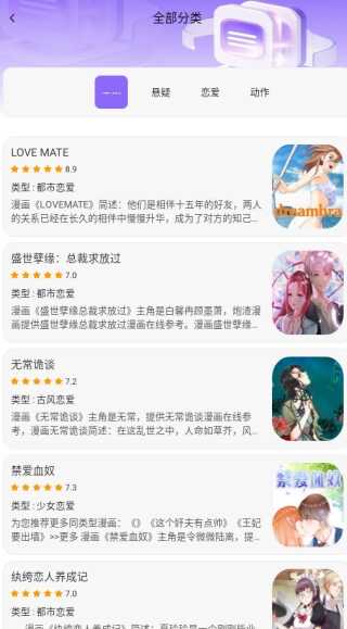 2、线上提供了热血、恋爱、悬疑、奇幻等各种题材,无论是热门漫画还是小众冷门作品,都能在其中找到。