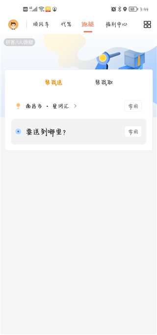 3、点击进入跑腿,用户在这里输入地址就可以进行各种跑腿服务了。