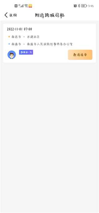 4、有跨城需求的用户还可以查看附近的跨城司机,实时进行打车。