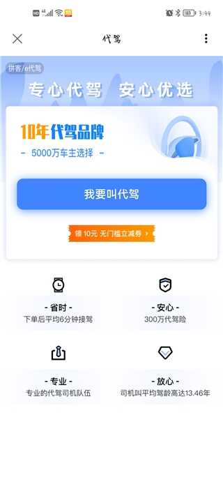 2、点击进入代驾,用户可以点击我要叫代驾进行叫代驾服务。