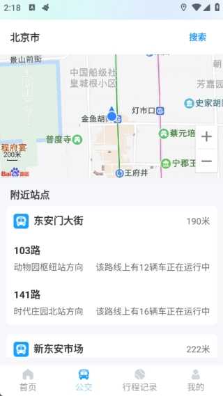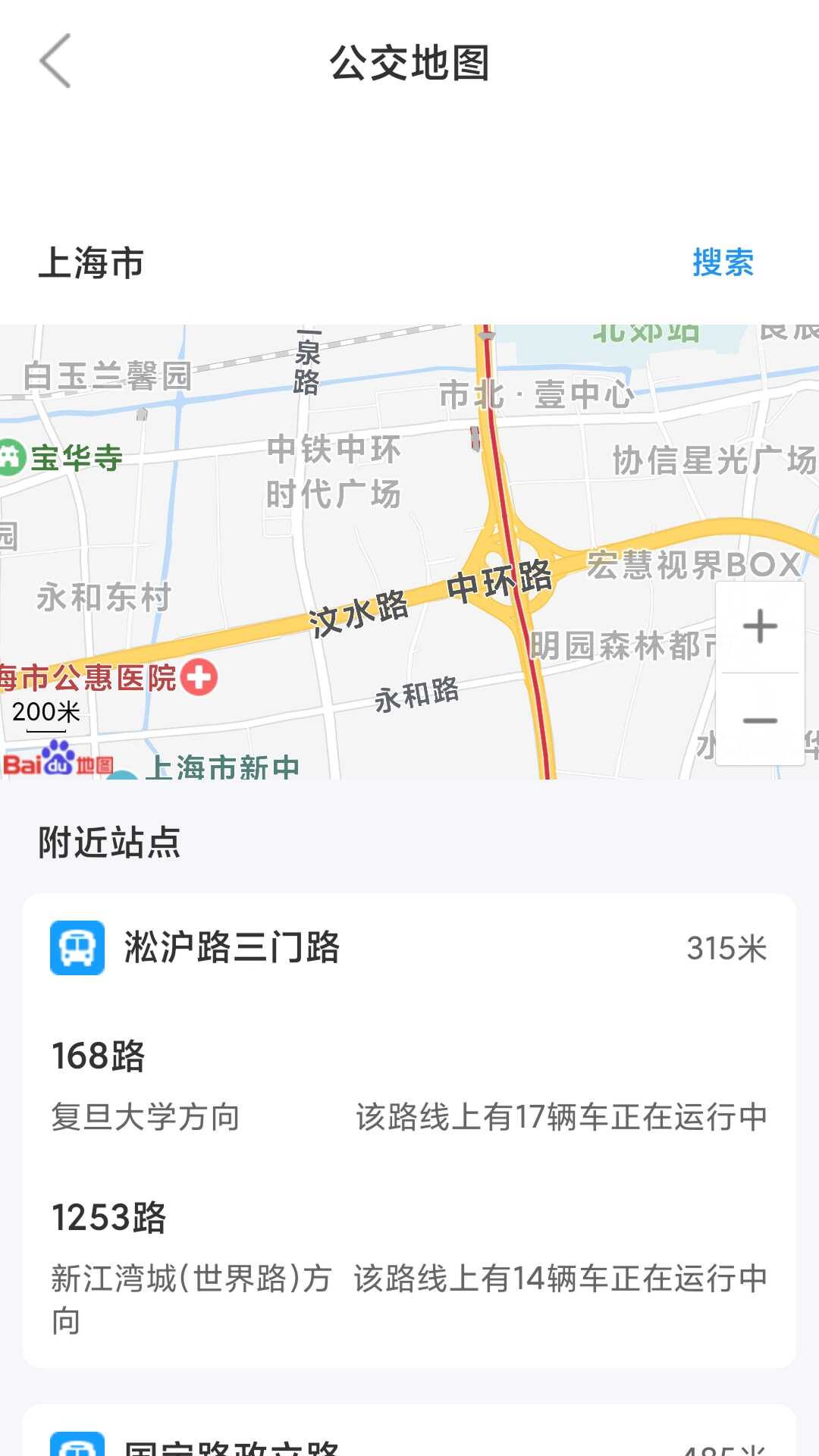 2.公交页面可查看实时公交地图,迅速定位附近站点及车辆到站信息。