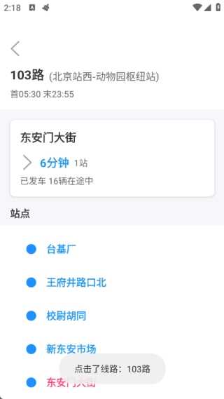 3.点击具体线路即可查看全程站点详情,并实时追踪在途车辆位置。