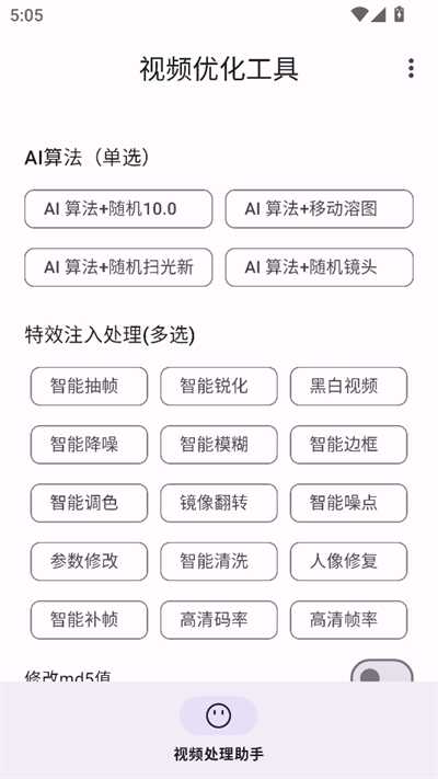 选择功能和视频点击一键处理即可