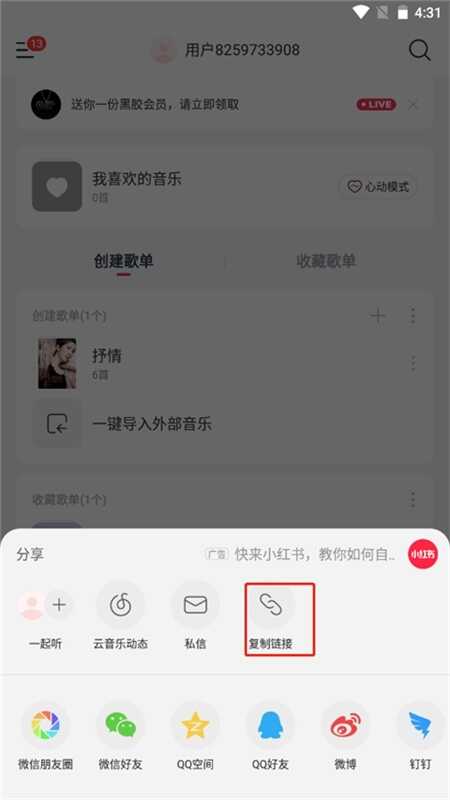 4、然后返回软件的页面,复制你的歌单链接,注意,复制歌单链接的时候不要将文字也复制进去哦;
