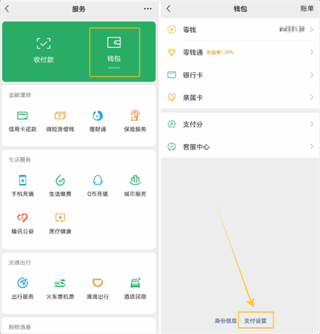 2、打开钱包,点击位于底部的支付设置。