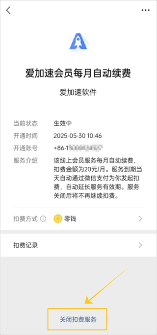 4、点击关闭扣费服务,确认关闭即可生效。