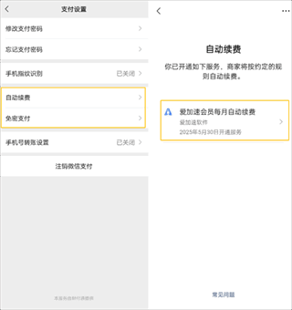 3、进入自动续费、免密支付,找到爱加速的服务。