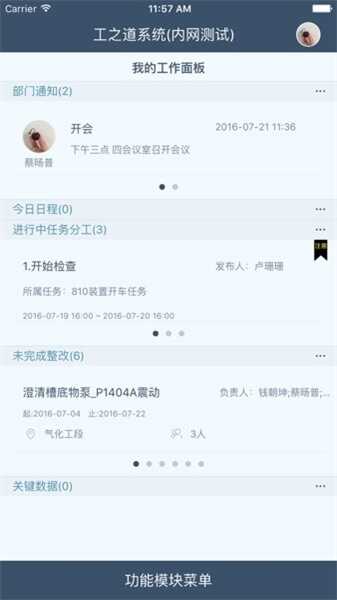 还提供帮助部门、人员等之間协同沟通的工具,比如日程、任务、提醒(xing)通知、个人工作面板等。