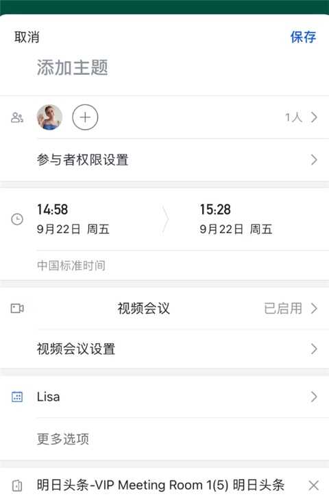 预定流程可参考下图,点(dian)击预订后添加日程主题、参与者、时间、会议室等相关会议信息即可完成(Finish)预定。