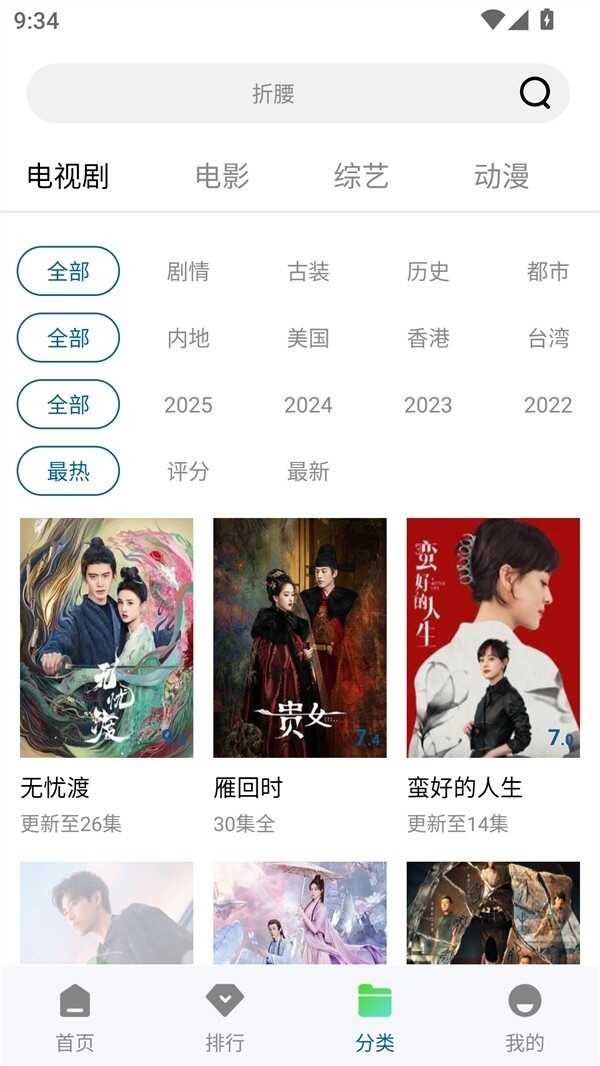 3、可以(keyi)通过下方的分类功能来获取到电视剧、电影、综艺、动漫等多个分类的影视内容。