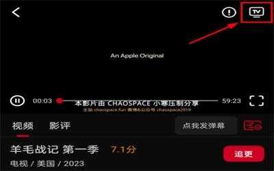 2、进入播放界面(interface)點击右上角的【TV】按钮即可投屏。