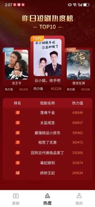 3、用户在热剧专区,可以查看最新的短剧排行榜(paixingbang)。