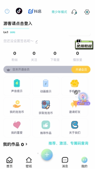 4、点击我的,可以在这里进行登录,提供粉丝、关注、下载量、播放(fang)量等服务在线。