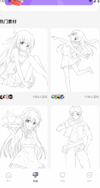 3、热门素材里面还有更加多绘画素材,可以在这里选择素材,自定义(zidingyi)绘画描线;