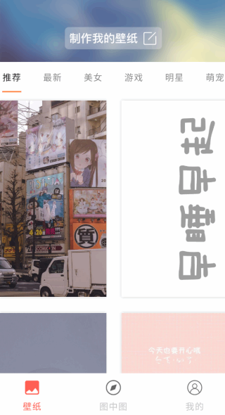 3、进入主页后,可以看到多种不同(butong)类型的壁纸资源,随时使用。