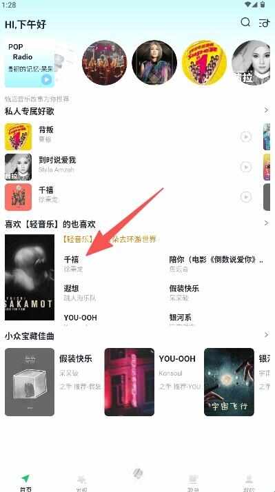 1、在首页“喜欢【轻音乐】的也喜欢”栏目点击“千禧徐秉龙”的播(bo)放按钮。