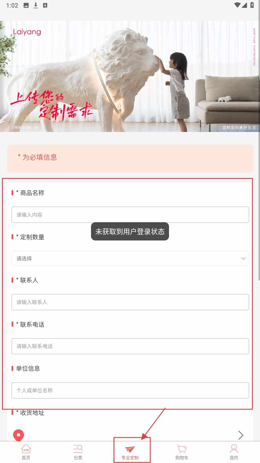 3、进入【专业定制】页,可上传定制需求,需填“商品名称”等信息,填完提交需求。
