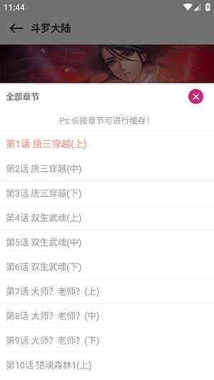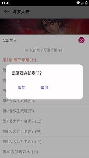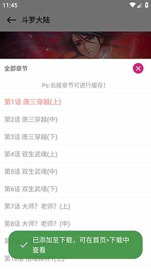 2、长按章节名字即可开始下载。