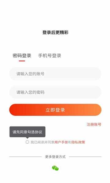 3、输入信息点击(ji)登录,如果没有账号则点击(ji)右下角注册账号。