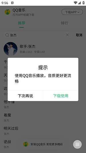 2、点击歌曲,会有弹窗显示,点击下次再说。