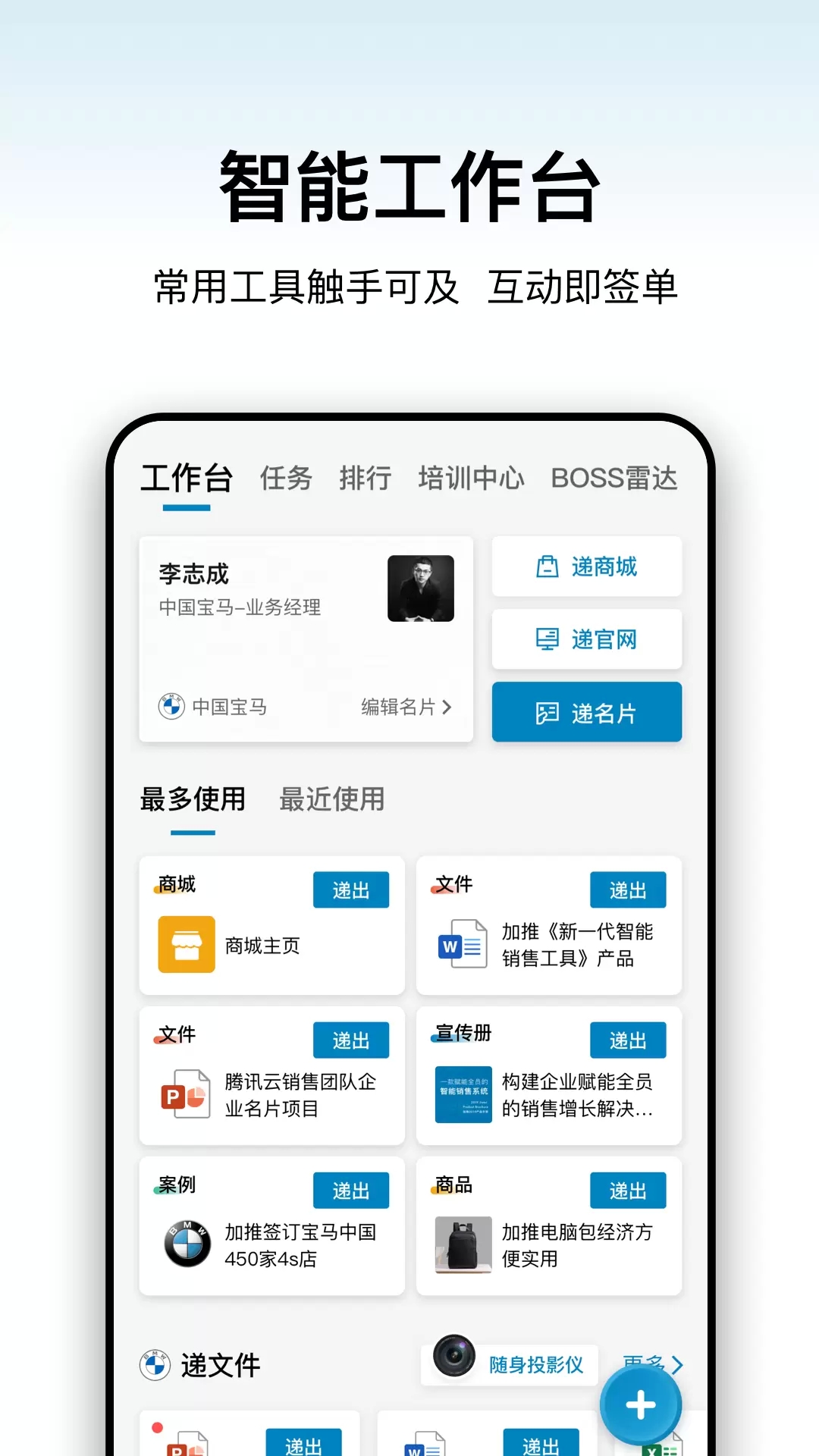 1、BOSS系统精细管(guan)理(li)BOSS雷达,清楚了解员工获客行为及客(ke)户转化情况,精细管(guan)理(li)员工及客(ke)户资源。推一下全新功能,强化获客行为管(guan)理(li),调动每个(each)员工的社交资源,实(shi)现(xian)获客转化,员工离职一键交接,客(ke)户资源不再流失。2、详细的用户行为分析为销售打造個人主页及挑选获客内容,提供数据参考,数据驱动客(ke)户管(guan)理(li),清楚记录每一条线索的来源与互动轨迹,实(shi)现(xian)数字化线索分层管(guan)理(li),提高转化效率(efficiency),丰富的客(ke)户标签,帮助销售深入了解客(ke)户偏好,定制个性化跟进策略。3、推一下轻松(song)获客全新数据看板,每日获客情况,一眼可见,全面功能模块,获客内容、朋友圈助手、商品推广,多种手段挑选,结合实际场景,提高获客转化率,好内容随时推给同事,相关信息一键推广获客,多种互动方式,团队协同营销获客。