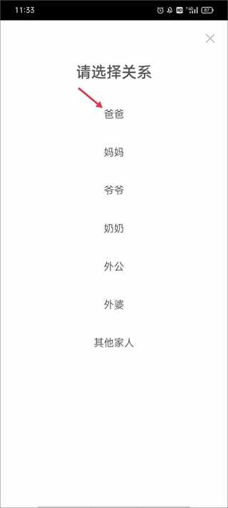 2、选好爸爸之后(zhihou),这时頁面会自动跳转到微信邀(yao)请界面,你可以将这个链接发给家人,也(ye)可(ke)以(yi)直接返回到软件主界面上;