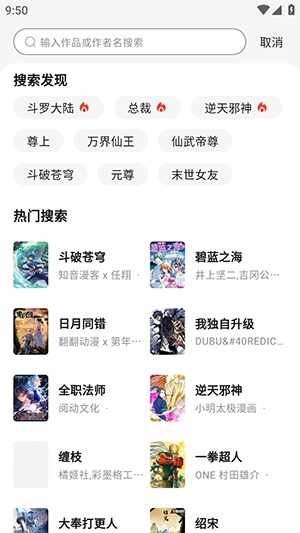 2、支持关键词搜索漫画名、作者名、角色名,秒级定位目标作品。