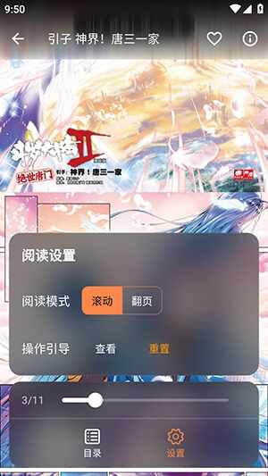 3、支持横屏 /竖屏切换、夜间模式、护眼模式等,可选择连续滚动、单页翻动或模拟书籍翻页效果。