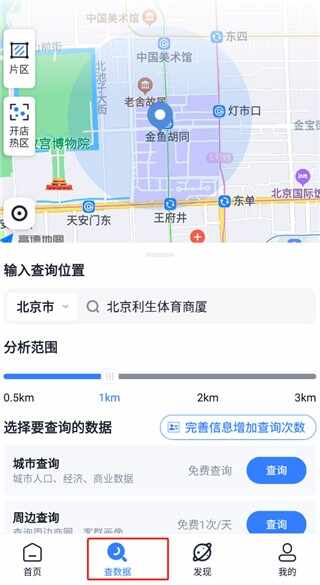 2、点击查数据,用户可查询城市、周边、人口、外卖、行业等等数据;