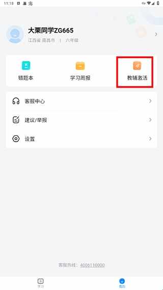 进入作业帮图书app我的,点击【教辅激活(huo)】