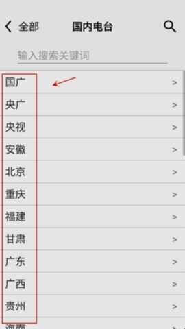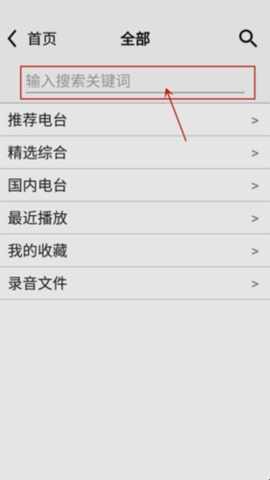 2、还可以自行搜索各种不同的电台,只需(just)在搜索栏输入(shuru)关键字即可。