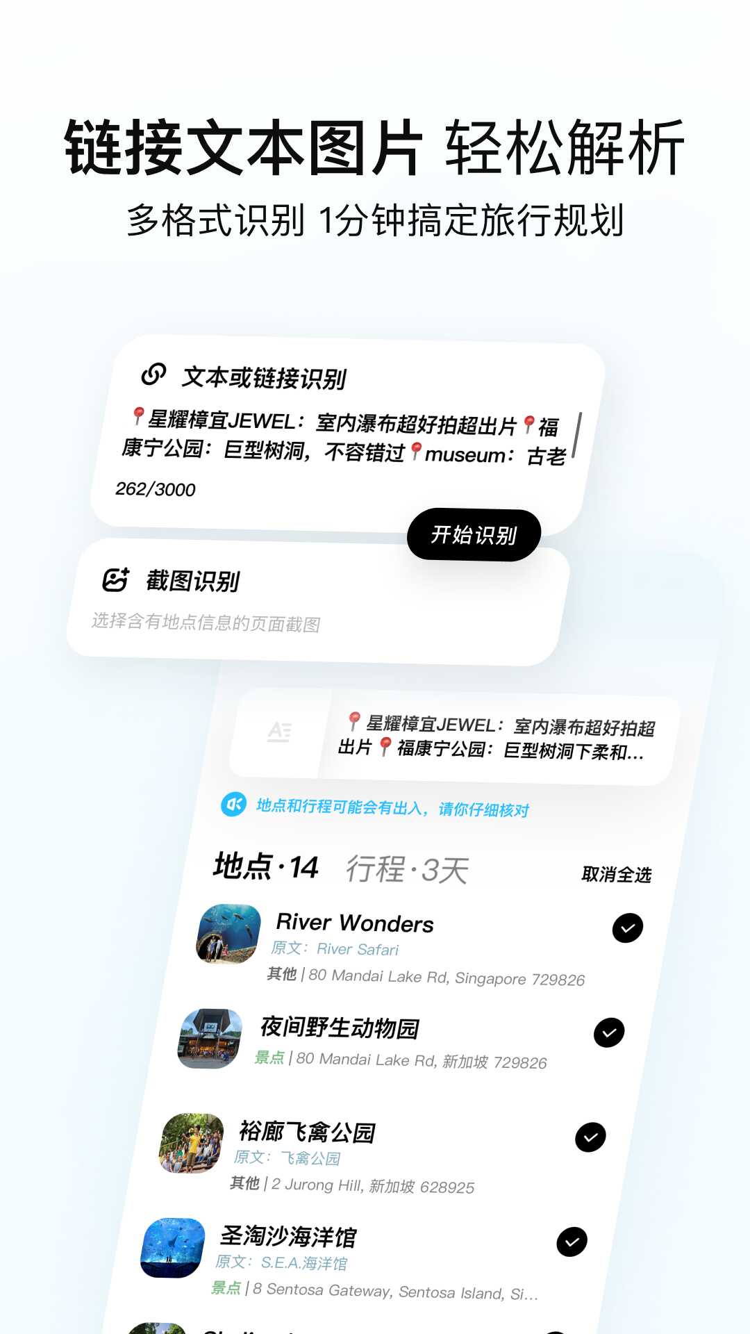 行程复制功能让轻松获(huo)取来自社交平台或其他网站的旅行(xing)攻(gong)略,快速将心仪的行程、哋點信(xin)息转移到软件中,节省了大量的时间和精力。