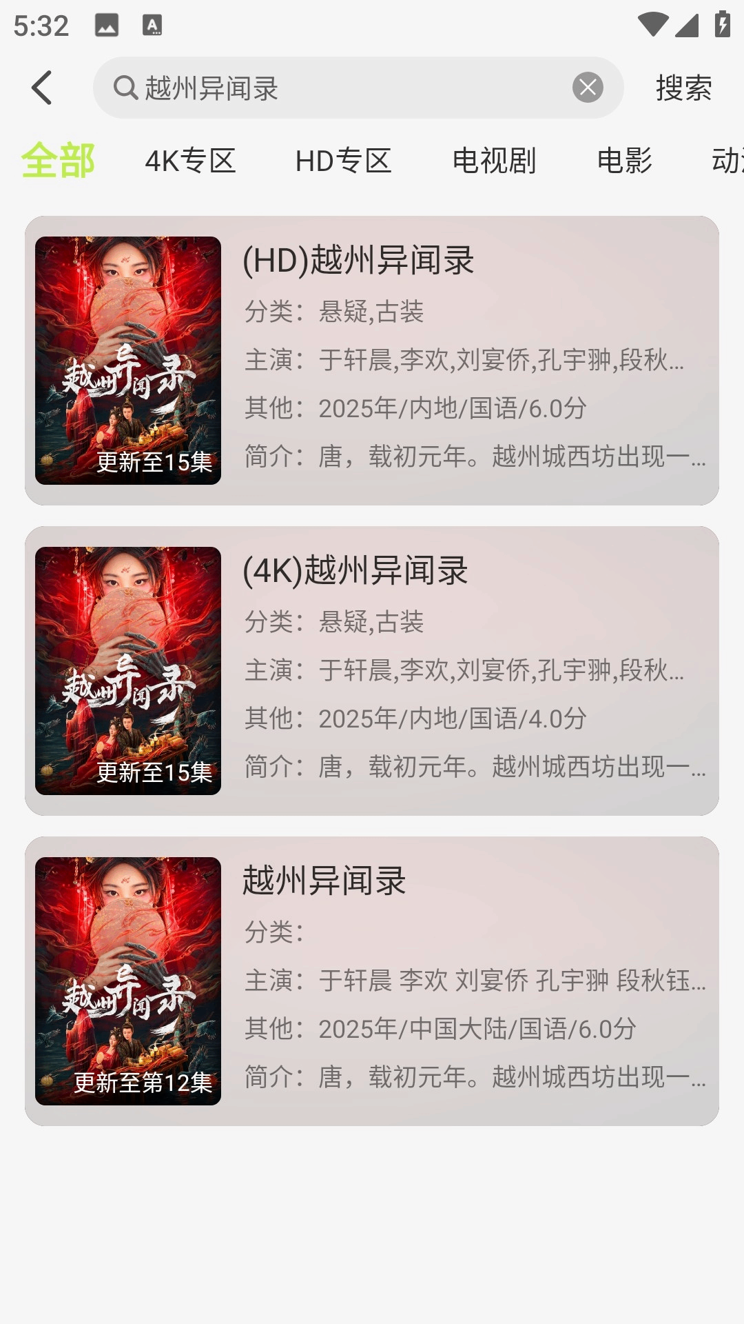 3、用户可以直接输入名称,简介,快速搜索你感兴趣的电视剧内容。