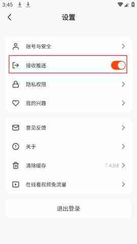 3、进入设置选项后关闭接收推送即可。