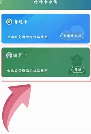 4、选择“拥军卡”开通;