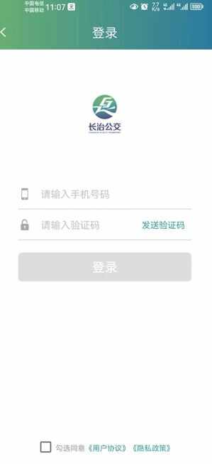 2、输入(enter)手机号码,发送验证码并填写正确,勾选最下方“协议”,点击登录,确保APP注册手机号码与上报公交集团一致。如数据不匹配,请与优待证办理所在乡镇(街道)退役军人服务站联系修改;