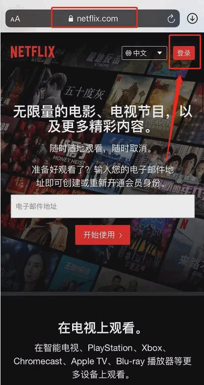 1.在我们的这个页面往下拉,找到netflix官网,点击「登录」