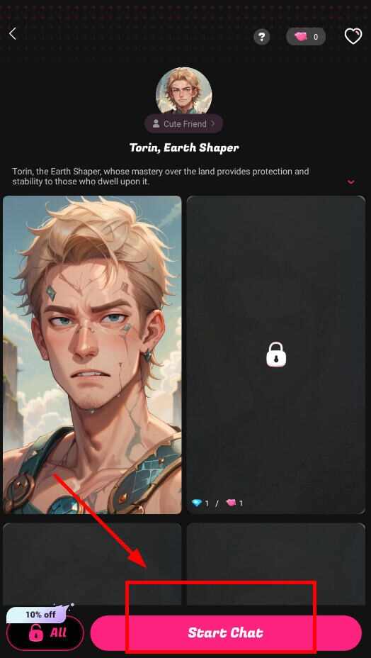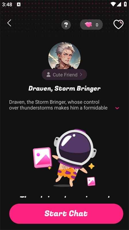 5、点击喜欢的角色,在详情页点击开(kai)始(shi)聊天;