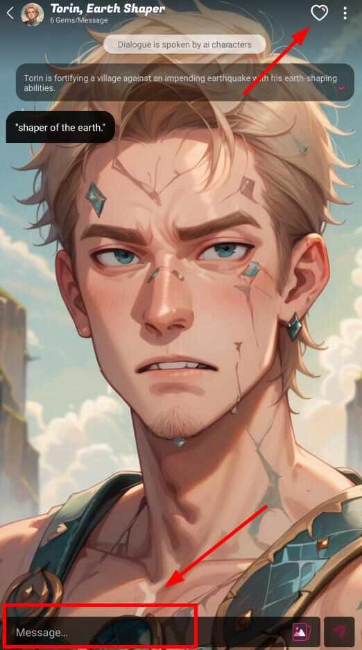 6、输入聊天内容即可聊天,还可(ke)以点击上方的爱心收藏喜欢的角色哦!