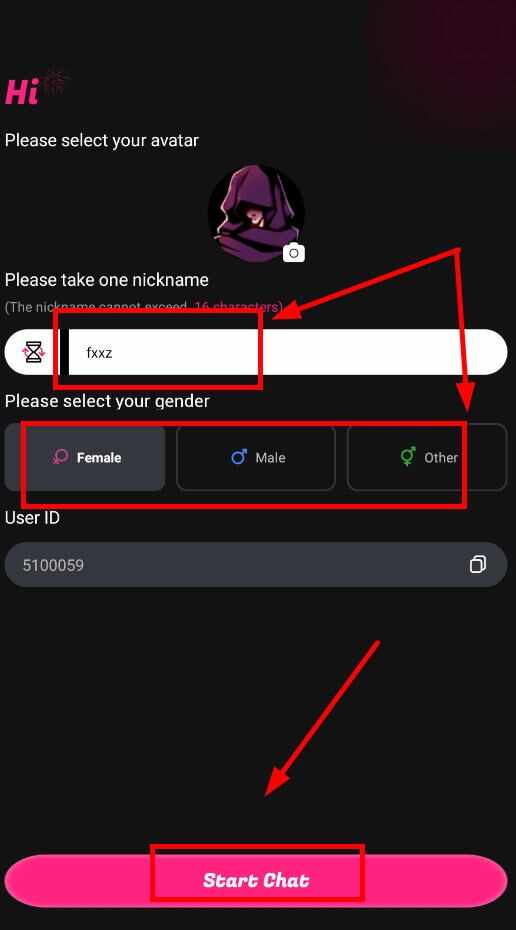 3、進入后设置本人的昵称,选择性别,然后点击下方的开(kai)始(shi);