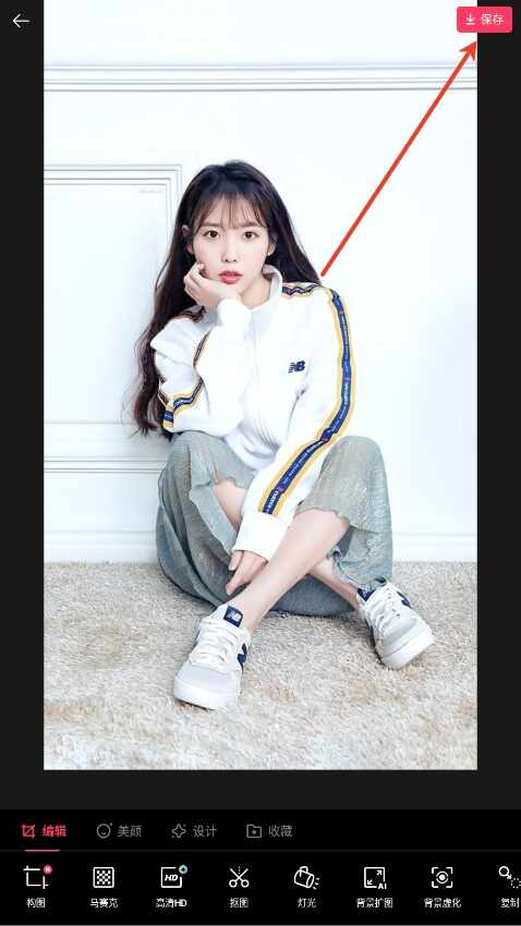5、编辑完成后,点击(ji)右上角保存按钮,选择(xuanze)分辨率并保存图片。