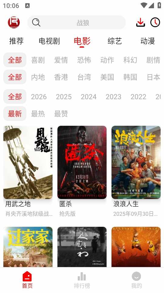2、软件提供了电视剧、电影(Movie)、综艺、动漫等不同板块;